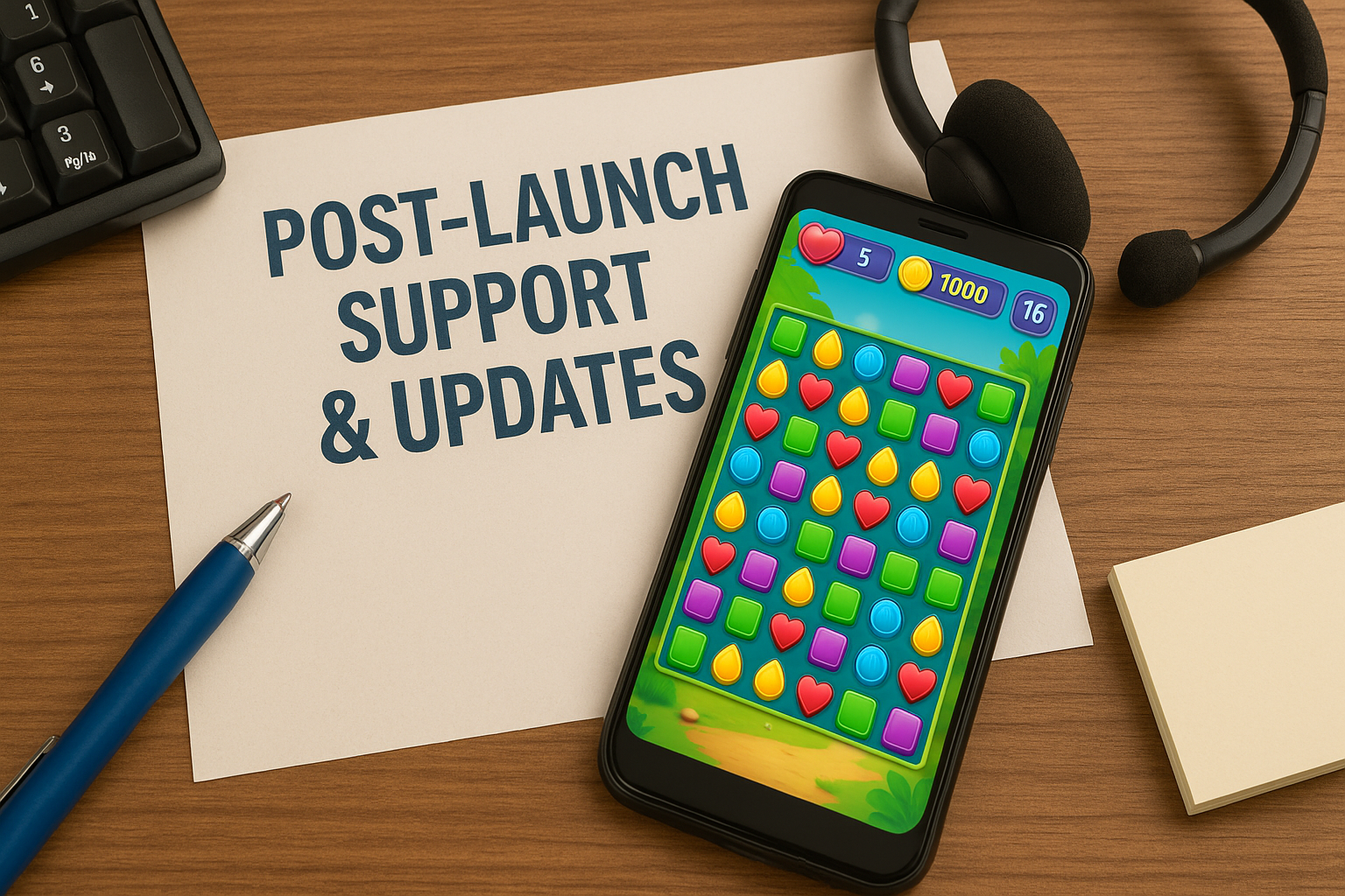 Ofrecemos soporte continuo, actualizaciones de contenido y mantenimiento para garantizar la longevidad y el éxito de tu juego.
